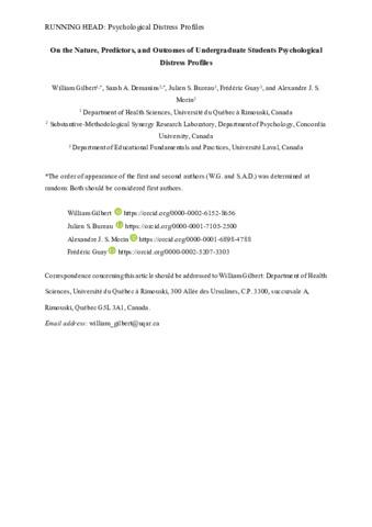 On the nature, predictors, and outcomes of undergraduate students' psychological distress profiles.