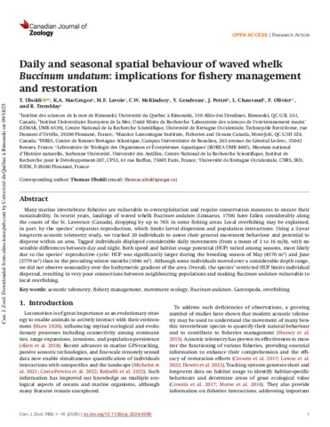 Uboldi, Thomas ORCID: https://orcid.org/0000-0001-9946-5796, MacGregor, K.A., Lavoie, M.F., McKindsey, Christopher W., Gendreau, Yanick, Pettré, J., Chauvaud, L., Olivier, F. et Tremblay, R.
