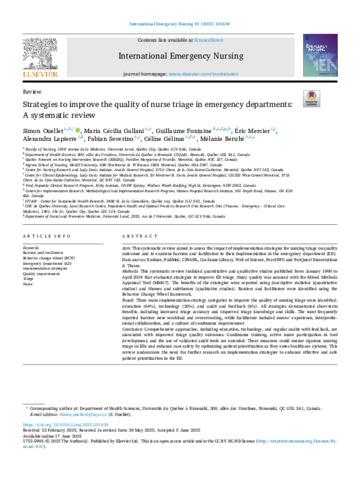 Strategies to improve the quality of nurse triage in emergency departments: A systematic review.