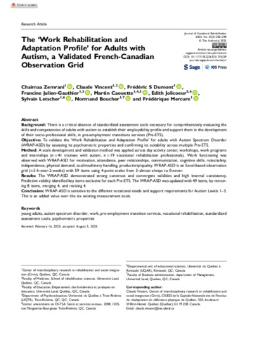 The ‘Work Rehabilitation and Adaptation Profile’ for Adults with Autism, a Validated French-Canadian Observation Grid.