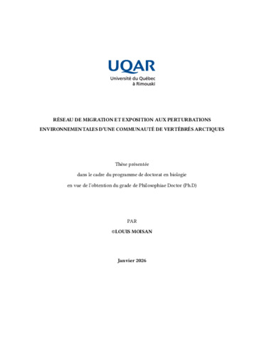 Moisan, Louis (2026). Réseau de migration et exposition aux perturbations environnementales d'une communauté de vertébrés arctiques. Thèse. Rimouski, Université du Québec à Rimouski, Département de biologie, chimie et géographie, 342 p.