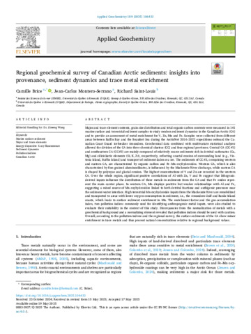 Regional geochemical survey of Canadian Arctic sediments: insights into provenance, sediment dynamics and trace metal enrichment.