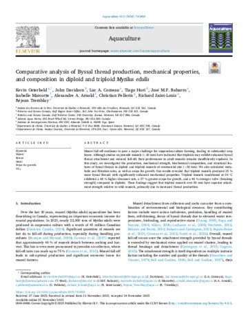 Comparative analysis of Byssal thread production, mechanical properties, and composition in diploid and triploid Mytilus edulis.