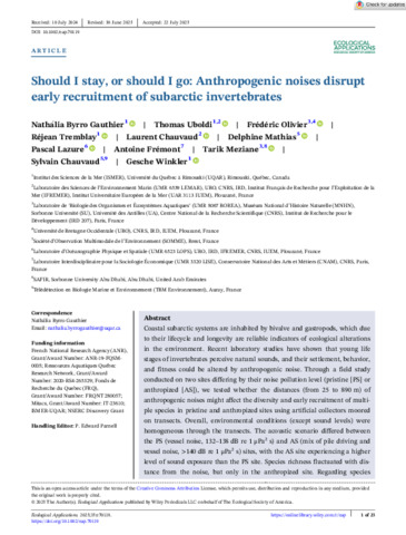 Should I stay, or should I go: Anthropogenic noises disrupt early recruitment of subarctic invertebrates.