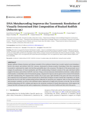 DNA Metabarcoding Improves the Taxonomic Resolution of Visually Determined Diet Composition of Beaked Redfish (Sebastes sp.).