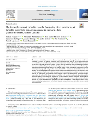 The incompleteness of turbidite records: Comparing direct monitoring of turbidity currents to deposits preserved in submarine fans (Pointe-des-Monts, eastern Canada).