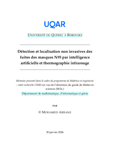 Arbane, Mohamed (2026). Détection et localisation non invasives des fuites des masques N95 par intelligence artificielle et thermographie infrarouge. Mémoire. Rimouski, Université du Québec à Rimouski, Département de mathématiques, informatique et génie, 104 p.